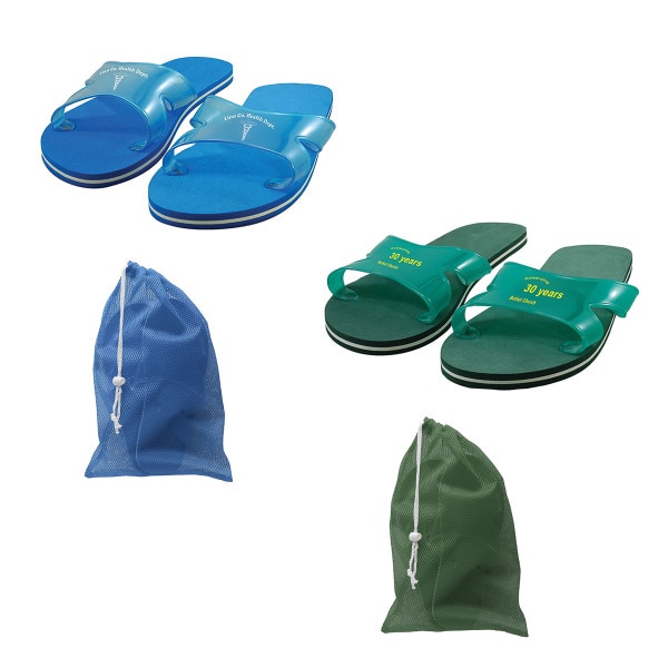 Each pair is banded together in a color-coordinated mesh drawstring bag.