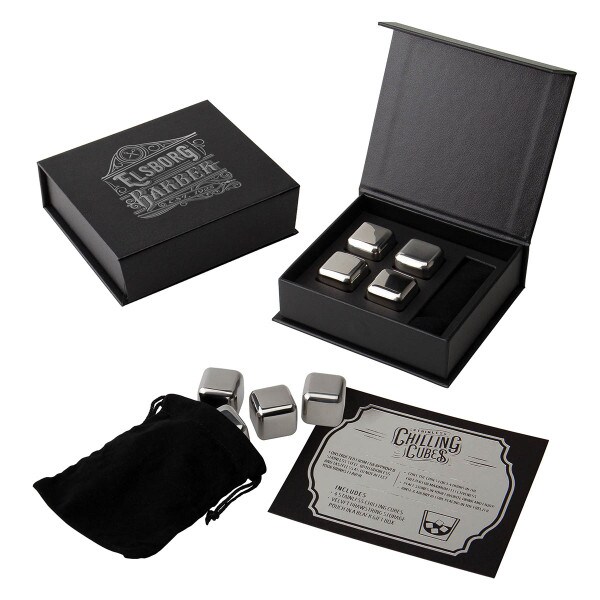 4 Stainless Steel Cubes, Instructions, and a Velvet Drawstring Pouch